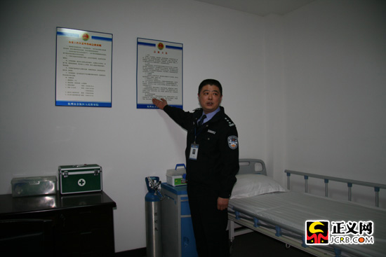 今年5月份,一位犯罪嫌疑人劉某在接受詢問中突感不適,辦案人員立刻中止審訊,啟動醫(yī)療救援處置預(yù)案,隨后醫(yī)學專家于15分鐘內(nèi)迅速趕到訊問室,對犯罪嫌疑人進行檢查,最終確診為高血壓,犯罪嫌疑人的病情很快得到控制,一起可能發(fā)生的辦案安全事故得到了及時避免。