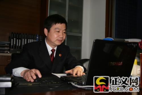 諸暨市人民檢察院黨組書記、代檢察長戴建華在電腦前與網(wǎng)友交流。 朱晶攝