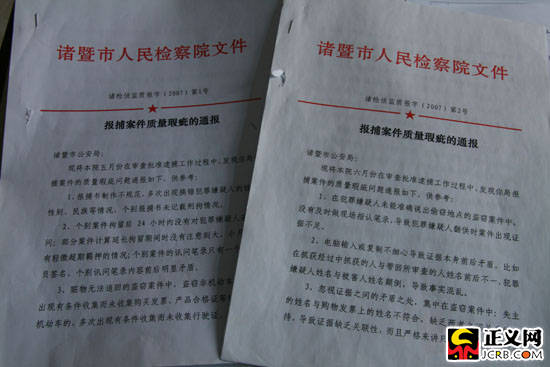 諸暨市人民檢察院自2007年下半年開始實(shí)行案件質(zhì)量瑕疵通報(bào)機(jī)制,該機(jī)制是檢察院院在辦理批捕、起訴案件時(shí),對(duì)偵查機(jī)關(guān)在執(zhí)法過程中出現(xiàn)的一些輕微違法進(jìn)行收集并定期通報(bào)予以糾正的一種監(jiān)督方法。朱晶/攝