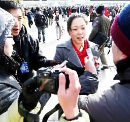 作為三位農(nóng)民工全國(guó)人大代表之一,來(lái)自上海的朱雪芹代表當(dāng)然不能被媒體記者“放過(guò)”。來(lái)者不拒,朱雪芹從容應(yīng)答。