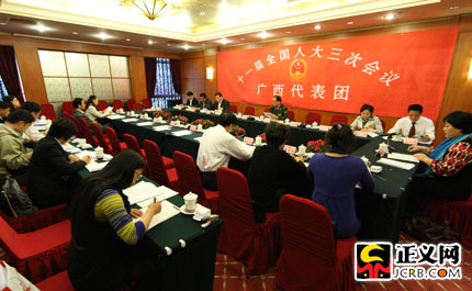 廣西省代表團(tuán)審議“兩高”工作報(bào)告。傅偉 攝