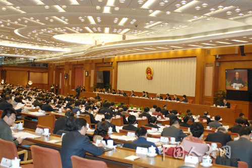 全國人大常委會(huì)副委員長(zhǎng)王兆國、路甬祥、烏云其木格、韓啟德、華建敏、陳至立、周鐵農(nóng)、李建國、司馬義?鐵力瓦爾地、蔣樹聲、陳昌智、嚴(yán)雋琪、桑國衛(wèi)出席會(huì)議。國務(wù)院副總理王岐山,最高人民法院院長(zhǎng)王勝俊,最高人民檢察院檢察長(zhǎng)曹建明,全國人大各專門委員會(huì)組成人員,各省、自治區(qū)、直轄市人大常委會(huì)負(fù)責(zé)人,部分全國人大代表等列席會(huì)議。(王偉 文/王新慶 攝)