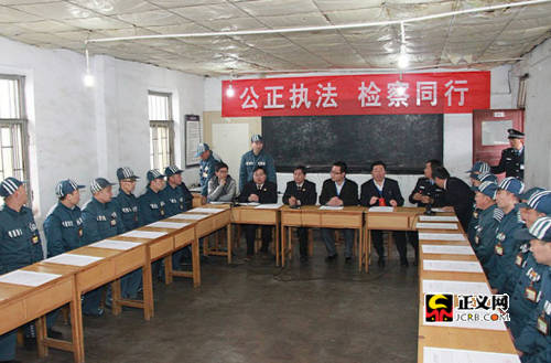 正義網(wǎng)12月1日電(記者侯文昌 見習(xí)記者林平)11月30日下午,“正義基層行——走進河南”采訪團前往三門峽市硤石監(jiān)獄參加由三門峽市檢察院監(jiān)所檢察室召開的服刑人員減刑假釋座談會。本次座談會由27名服刑人員參加,三門峽市檢察院檢委會專職委員唐景剛、硤石監(jiān)獄監(jiān)獄長張?zhí)煜榈认嚓P(guān)負責(zé)人參會。