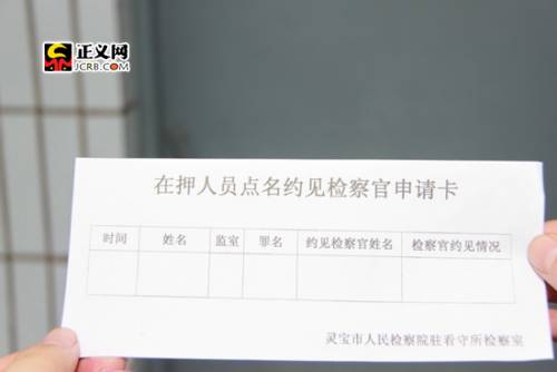 張靈建主任向正義網(wǎng)記者展示了在押人員點(diǎn)名約見檢察官申請卡。 姚宇/攝