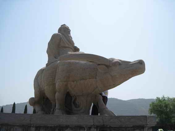 下了關樓,來到花崗巖砌成的“老子騎青!钡裣袂,很多人都會產生這樣的疑問:老子離關西去之后,去了哪里?這個問題一問千年,我也同樣好奇。據說圣人繼續(xù)西行至秦國歸隱山林,也有說他西行至昆侖山修道。但我寧愿相信圣人出關后,得道上天做了太上老君,他下臨萬民,造福靈寶百姓;他仙氣一呵,庇蔭寺河山的蘋果和后地的大棗;他道袖一揮,成就小秦嶺的金光燦燦。